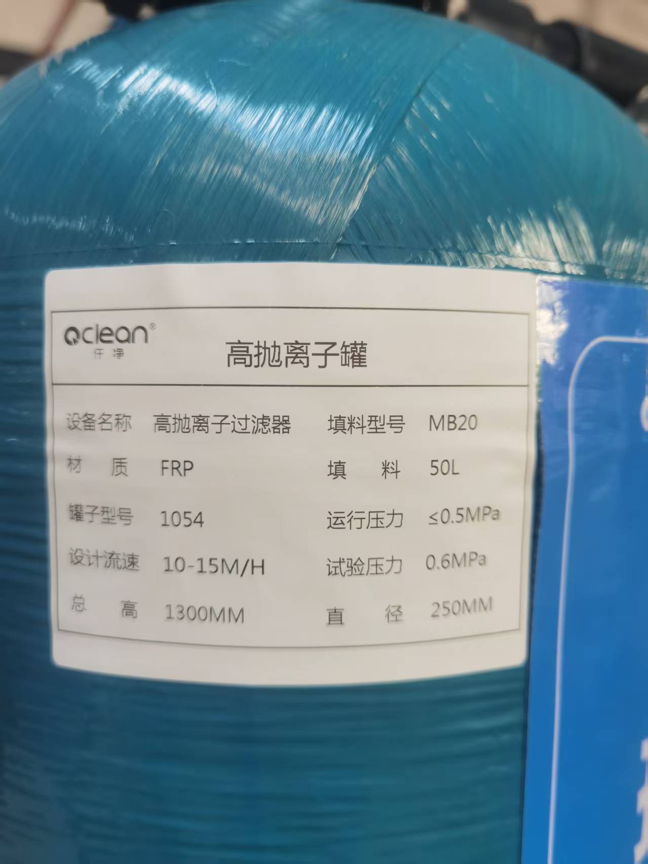 高抛离子罐,是超纯水系统后处理工艺段之一,一般由供水泵+高抛离子柱+后置微米过滤器组成。主要作用为深度去除水中的阴阳离子杂质,使出水水质达到18M以上,金属离子含量降低到1ppb以内。